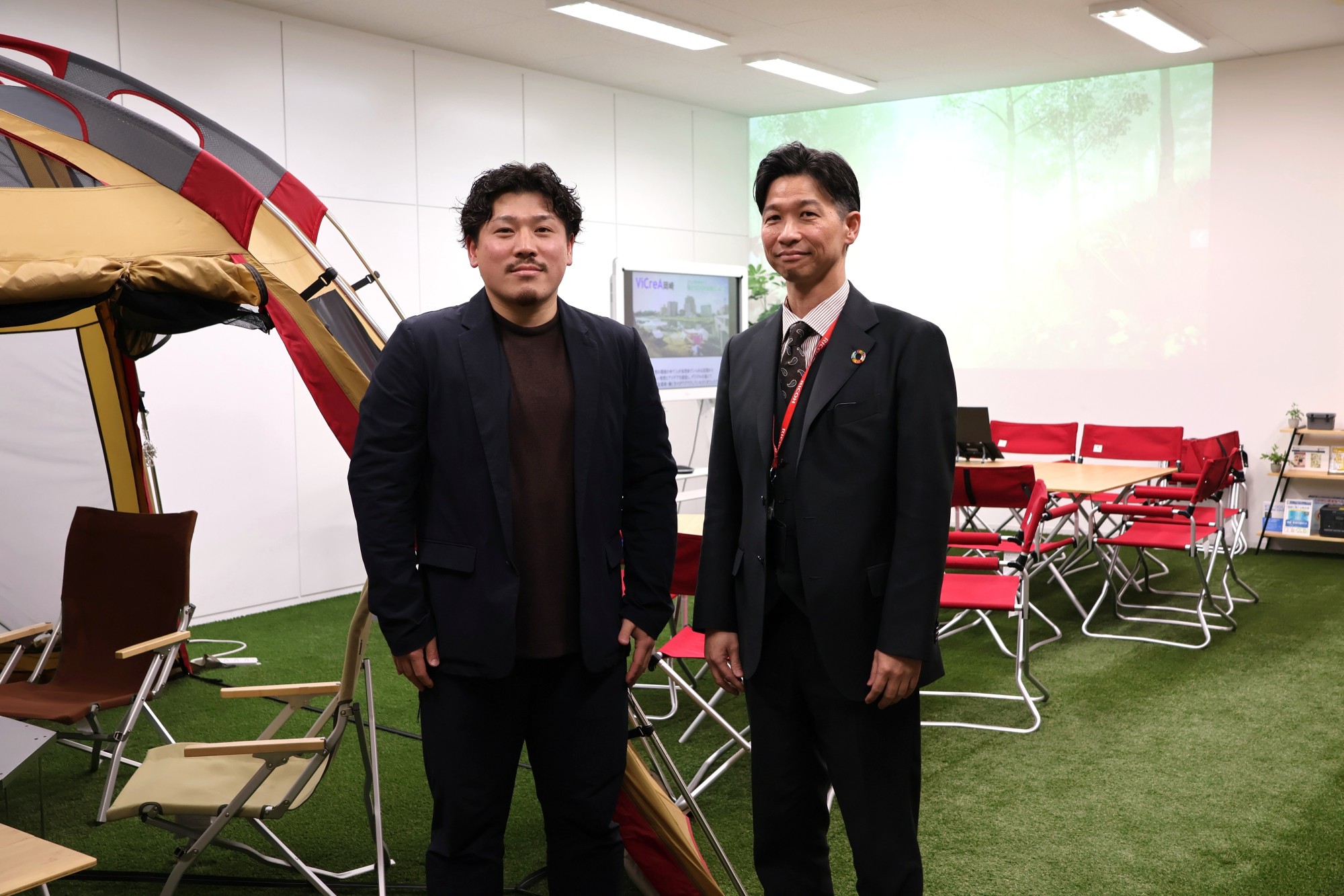 2025年6月、ViCreA岡崎は自然の環境の中で自らが考え、選択し、行動できるオフィス「OKAZAKI CAMP Office」をコンセプトにオープンしました。これは、スノーピークビジネスソリューションズが提唱する「キャンピングオフィス」のコンセプトを導入し、リコー独自のデジタル技術と融合させた新しい試みです。