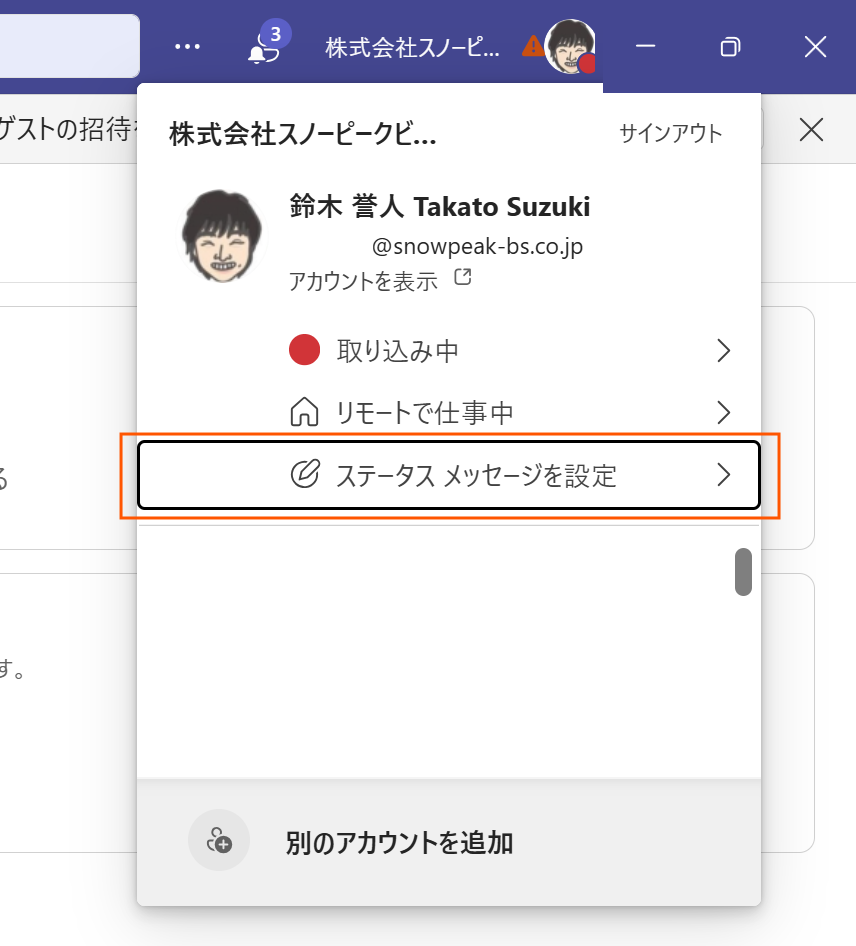 ▼「ステータス メッセージを設定」を選択