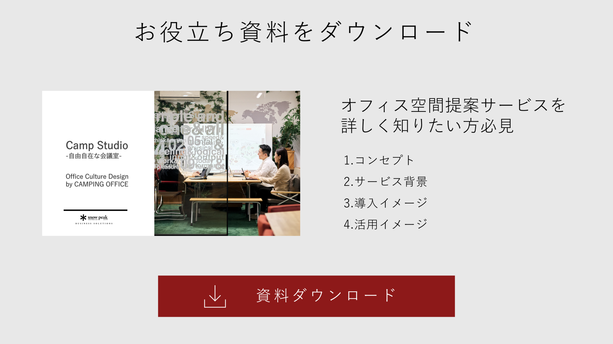 私たちスノーピークビジネスソリューションズは、キャンプを活用した空間デザインと協働体験デザインで心理的安全性を高める、新しいチームビルディングをご提案します。参加者と相談しながら、会議の目的に沿って最適なスタイルを選ぶことが重要です。
