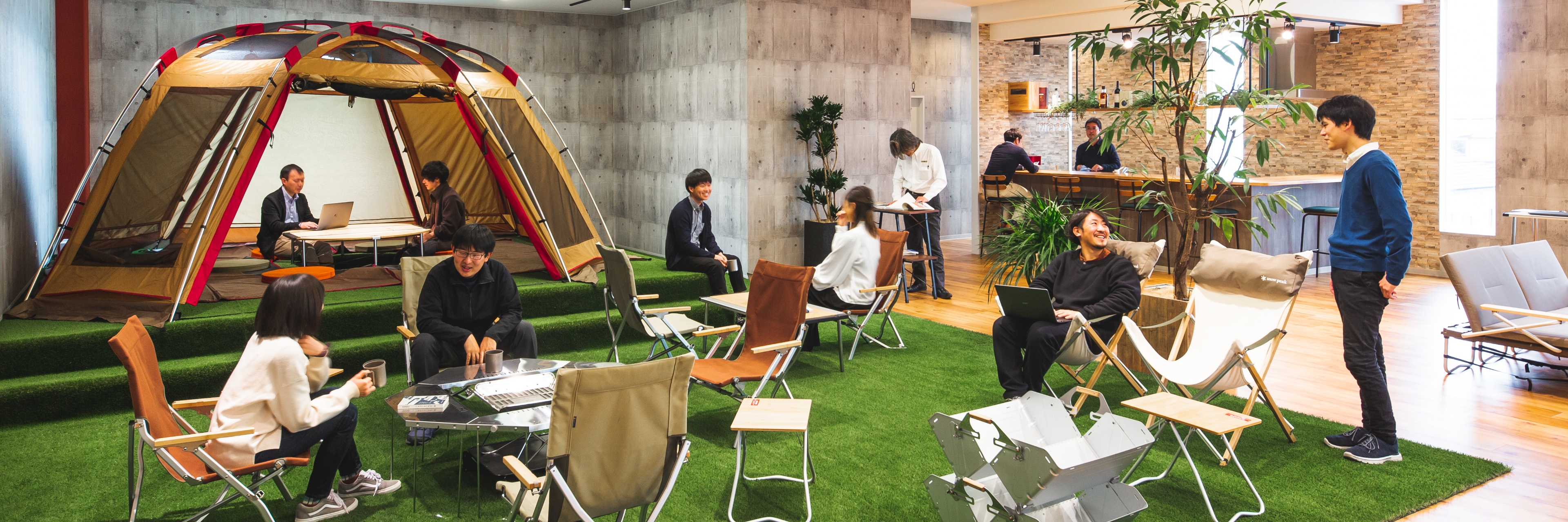 オフィスにキャンプ用品を取り入れた、五感を刺激する空間をご提案します。