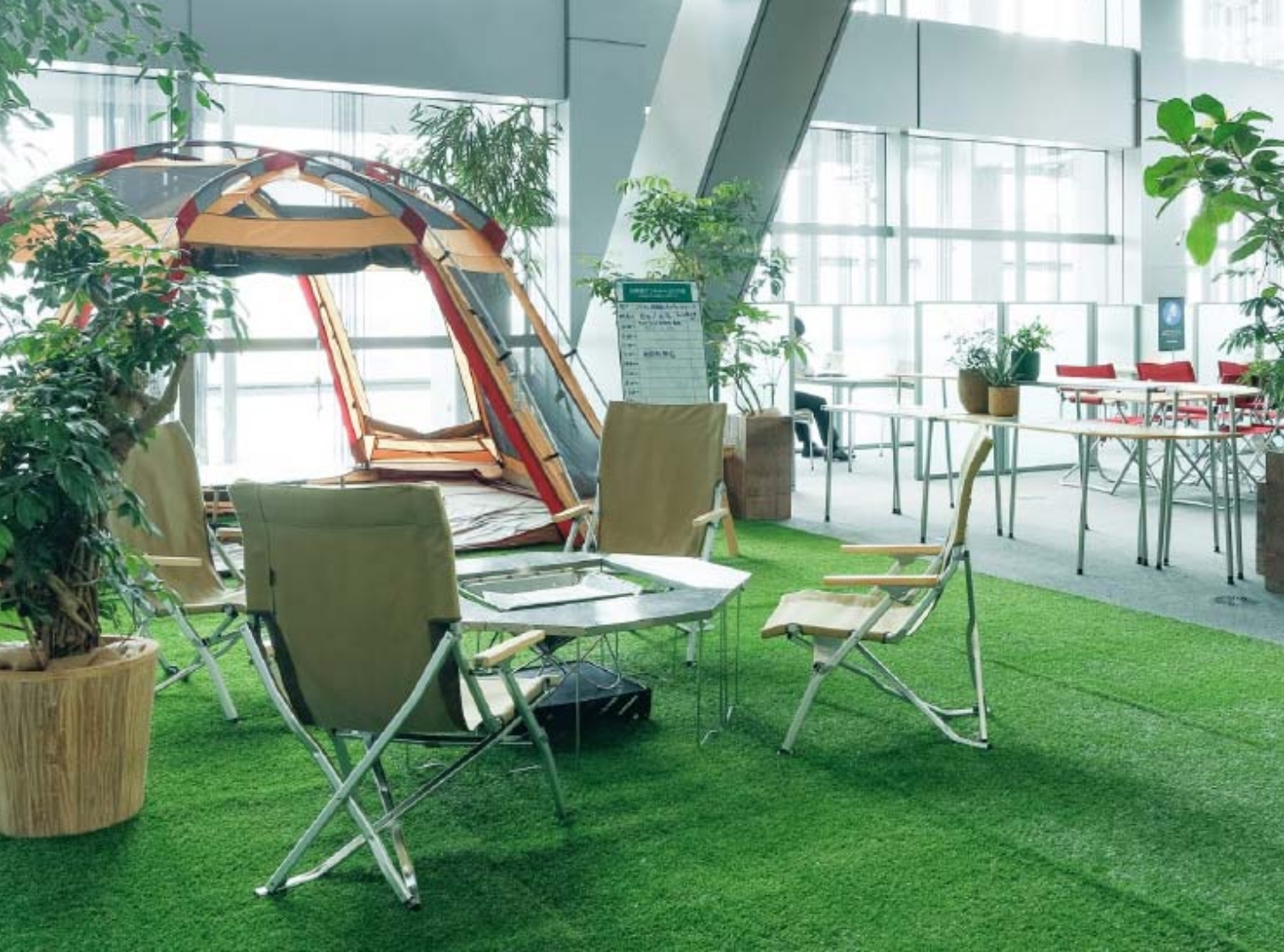 キャンプフィールドにいるかのような、開放感と遊び心いっぱいのオフィスをイメージしてみてください。
